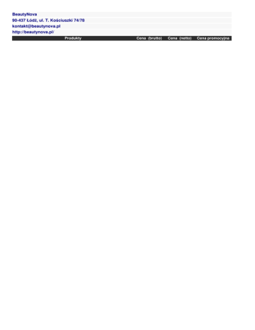 BeautyNova 90-437 Łódź, ul. T. Kościuszki 74/78 [email protected] http://beautynova.pl/ Produkty Cena (brutto) Cena (netto) Cena promocyjna