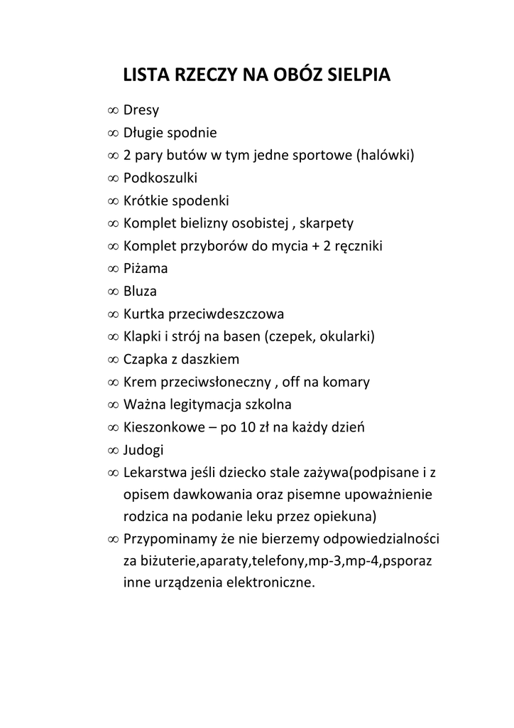 LISTA RZECZY NIEZBĘDNYCH NA OBÓZ PRZYGODOWY dresy