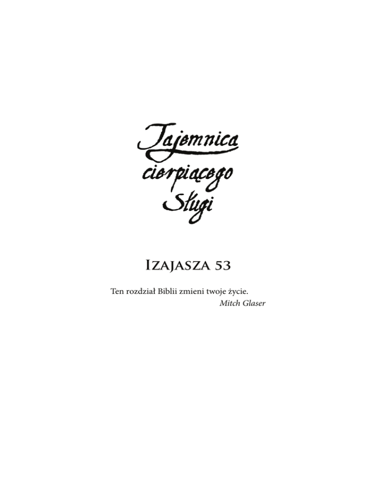 Izajasza 53 Ten rozdział Biblii zmieni twoje życie. Mitch Glaser Mitch Glaser Izajasza 53 Warszawa 2014 Tytuł oryginału: Isaiah 53 Explained Copyright© 2010 by Mitch Glaser Edited and used by permission from Chosen People Ministries Inc. All rights reserved Tłumaczenie: Sławomir Ryżyk Redakcja i korekta: Włodzimierz Tasak Projekt okładki: Radosław Krawczyk Skład: Mikrograf s.c. www.mikrograf.pl Druk i oprawa: Drukarnia ReadMe Łódź Copyright © 2014 for the Polish edition by Wydawnictwo Bogulandia, Warszawa 2014. All rights to the Polish edition reserved Książka, ani żadna jej część, nie może być przedrukowywana ani w jakikolwiek inny sposób reprodukowana czy powielana mechanicznie, fotooptycznie, zapisywana elektronicznie lub magnetycznie, ani odczytywana w środkach publicznego przekazu bez pisemnej zgody wydawcy. W sprawie zezwoleń proszę zwracać się do: Wydawnictwo Bogulandia tel. 603 072 828 [email protected] Wszelkie cytaty tłumaczone z Biblii Hebrajskiej pochodzą z: Pismo Święte Starego i Nowego Testamentu © Edycja Świętego Pawła, 2011 ISBN 978-83-63097-24-0 Książkę wydano staraniem Piotra i Daniela Olszewskich Książka do nabycia: Księgarnia i Hurtownia wysyłkowa „Bogulandia” tel. 603 072 828 [email protected] www.bogulandia.pl SPIS TREŚCI Przedmowa 7 Przedmowa do polskiego wydania 11 Wprowadzenie 13 1. Jestem Żydem – i co teraz? 19 2. Biblia Hebrajska – coś więcej niż książka historyczna 33 3. Proroctwa biblijne – odsłanianie przyszłości 47 4. Prorok Izajasz – jego przesłanie i czasy 57 5. Sługa Pański 65 6. Sługa a Jego ofiara 71 7. Izajasza 53 a sprawa zadośćuczynienia 79 8. Wiarygodność Nowego Testamentu 95 9. Czy Jeszua jest wypełnieniem proroctwa Izajasza? 111 10. Odpowiedź na zastrzeżenia Żydów 129 11. Izajasza 53 a ty 139 12. Nie jesteś sam 143 Od autora 151 Aneks: Inne proroctwa wskazujące na Jeszuę jako żydowskiego Mesjasza 155 Zalecane lektury 168 PRZEDMOWA Jeden z rozdziałów Biblii naprawdę może zmienić twoje życie! To pięćdziesiąty trzeci rozdział Księgi Izajasza, a bestsellerowa książka, w której on się znajduje, to Biblia, konkretnie zaś święte Pisma Żydów, zwane też Biblią Hebrajską lub Starym Testamentem. Ta niewielka książka została napisana głównie z myślą o ludziach niewyznających żadnej religii. Z uwagi na to, że pięćdziesiąty trzeci rozdział Księgi Izajasza znajduje się w Biblii Hebrajskiej, jest on adresowany przede wszystkim do żydowskiego czytelnika. Nie miała być czytana wyłącznie przez Żydów. Tak jak Jerozolima jest żydowskim miastem ważnym dla wyznawców wielu religii, Biblia Hebrajska, początkowo zbiór żydowskich ksiąg, uznawana jest za święte Pisma również przez chrześcijan. Stary Testament jest też wspomniany w Koranie. Mimo że Księga Izajasza skierowana jest głównie do Żydów, mam nadzieję, że będzie czytana i rozumiana również przez ludzi innych religii: chrześcijan, muzułmanów, buddystów, hinduistów oraz tych, którzy nie czują się związani z żadną formalną religią, ale starają się pogłębiać swoją relację z Bogiem. Jest wiele powodów, dla których Izajasza 53 może zmienić twoje życie. Jako rozdział Biblii Hebrajskiej, tekst ten opisuje naszą historię, etykę, religię i podstawy naszego 7 żydowskiego dziedzictwa. Stary Testament zawiera też mnóstwo informacji dotyczących miłości Boga do pogańskich narodów oraz planów, jakie dla nich przewidział. Bez względu na to, czy jesteś Żydem, osobą religijną czy też nie, mam nadzieję, iż czytając i rozumiejąc Izajasza 53, będziesz doświadczać zmiany w swoim życiu. Drogi Czytelniku, pozwól, że przedstawię kilka istotnych powodów, dla których uważam, że pięćdziesiąty trzeci rozdział Księgi Izajasza może okazać się dla ciebie znaczący. Wierzę, że ten rozdział Biblii: • pomoże ci zrozumieć pewne rzeczy o sobie samym, zwłaszcza o twojej relacji z Bogiem Abrahama, Izaaka i Jakuba, • pokaże ci, że Biblii można ufać, • zaprezentuje ci Boga, który przepowiada przyszłość oraz sprawia, że zgodnie z tymi zapowiedziami ona następuje, • ukształtuje twoje oczekiwania co do tego, kim jest Mesjasz. Odkryjesz, jak ten rozdział Biblii wypełnił się w życiu Tego, którego wielu nazywa „największym Żydem, jaki kiedykolwiek żył”. Książka ta została napisana przez mesjańskiego Żyda, wierzącego w to, że Jezus (Jeszua) jest Mesjaszem Izraela i wypełnieniem się proroctwa z Izajasza 53. Autor jest też osobą, której życie na skutek tej wiary zostało całkowicie przemienione. Będąc wychowanym w tradycyjnym żydowskim domu, w pełni rozumiem, jakim wyzwaniem jest przyjęcie postawy otwartej na możliwość uznania faktu, że Jezus może być Mesjaszem. Tak wielu Żydów poszukuje jakiejś głębszej duchowości i pragnie bliskiej, osobistej relacji z Bogiem. 8 Wielu z nas nie znalazło tego w żydowskiej religii, mimo że nigdy nie chcielibyśmy odrywać się od naszej żydowskiej społeczności. Kiedy wiele lat temu uwierzyłem, że Jeszua jest Mesjaszem, zdecydowanie nie miałem zamiaru porzucenia swojej żydowskiej tożsamości. Poszukiwałem autentycznej duchowości. Wydaje mi się, że i ty masz podobne pragnienia. Mam nadzieję, że byłbyś w stanie odłożyć na bok – choćby na chwilę – powszechne przekonanie, że nie można być Żydem i wierzyć w Jezusa. W końcu, jeśli jeden z największych żydowskich proroków przepowiedział pewne szczególne cechy i wydarzenia, które wypełnił właśnie Jeszua, to z pewnością może to być podstawą do przekonania, że można być Żydem i wierzyć w Jezusa. Mam nadzieję, że gdy będziesz czytać tę niewielką książkę, Bóg dotknie twojej duszy. Modlę się, aby twoje duchowe poszukiwania głębszej i bliższej relacji ze Stwórcą zamieniły się w upragnioną rzeczywistość, tak jak stało się to w moim 
