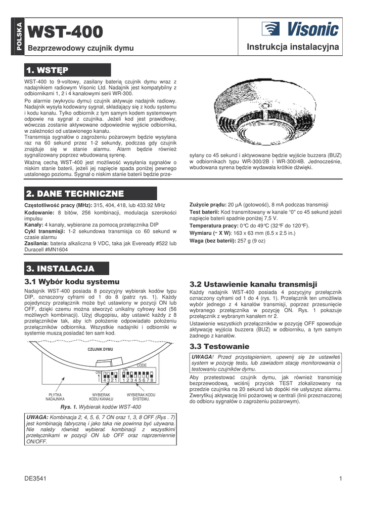 VISONIC CENTRAL EUROPE (POLSKA & CE) 01-698 WARSZAWA, SMOLE SKIEGO 2, TEL. (022) 639-34-36 FAX (022) 833-48-60