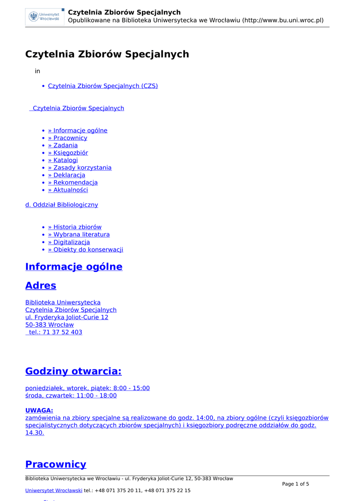 Czytelnia Zbiorów Specjalnych - Biblioteka Uniwersytecka we