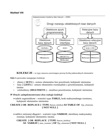 W Oracle zaimplementowano dwa rodzaje kolekcji