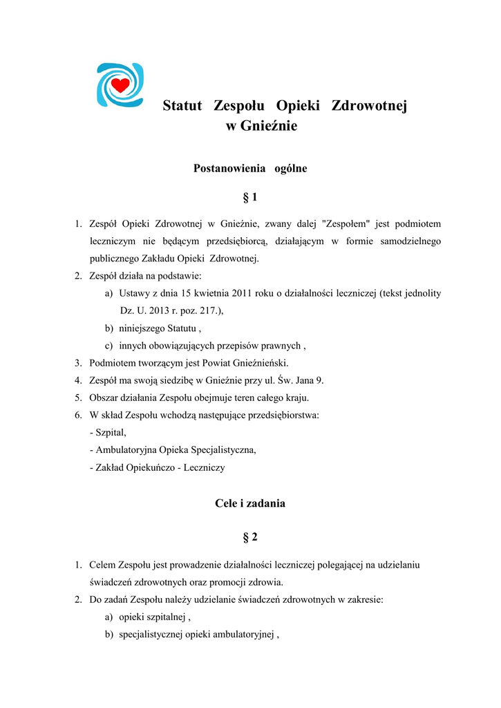 Statut Zespołu Opieki Zdrowotnej w Gnieźnie