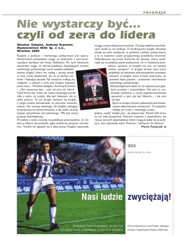 recenzja Nie wystarczy być... czyli od zera do lidera Wiesław Gałązka, Andrzej Krywicki, Wydawnictwo MAK Sp. z o.o., Wrocław 2004 bNTÙRLYTNedXVWL^dNeYdV]dXTYLčE]P^e_ÙbÙ_VÇbV]dXTYLW YdNS bNLWP _` YTP M]LV`UP : L_]LVNdUYZĦNT V^TÙŇVT OPNdO`UP b^eLV UPU ^TWYP Z^LOePYTP b [ZW^VTNS ]PLWTLNS [ZWT_dNeYdNS L _P b Z^_L_YTX NeL^TP []ed[ZXTYLUÙ []LbOeTbd V]dXTYLč :ObZčdbLYTP ^Tí []ePe ,`_Z]Çb OZ ^d_`LNUT V_Ç]P bdOL ]edčd^TíYL[ZW^VTPU^NPYTP[ZWT_dNeYPUT_ZbYTPOLbYPU[]eP ^ečZĦNT ^[]LbTL ŇP V^TÙŇVL XL NZĦ NZ YLebLÛ XZŇYL k_PX[PXu E O]`RTPU ^_]ZYd ZbP WTNeYP []edVčLOd^ÙĦbTP_YdXeZM]LeZbLYTPX[]ePO^_L bTZYdNS b V^TÙŇNP _PZ]TT V]PLNUT bTeP]`YV` NZ [ZebLWL WP[TPU [ZeYLÛ T e]Ze`XTPÛ XPNSLYTeXd XL]VP_TYR`[ZWT_dNeYPRZ ELWP_ÙV^TÙŇVTUP^__LVŇP_ZŇPYL[T^LYLUP^_Uíed VTPX []Z^_dX T e]Ze`XTLčdX 9TP UP^_ _Z ]Ze []LbVL YL`VZbL L ]LNePU [Z[`WL]YZYL`VZbL Z[ZbTPĦÛ Z _dX ULV MdÛ WTOP]PXl T ULV YTX YTP MdÛ >[Z]ZbV^TÙŇNPŇL]_ÇbeLMLbYdNS[Z]ÇbYLď Neí^_ZeLML]bTZYdNS^L]VLeXPX?Zb^ed^_VZ OZOLUP UPU`]ZV`T^bZT^_PRZ ^XLV` 5POdYÙkbLOÙuV^TÙŇVTUP^_lUPUZM^eP]YZĦÛ;ZYLO^_]ZY _Z YTP WLOL []eP[]LbL ;ZWPNLX Ned_LYTP e YZ_L_YTVTPX MZ ]ePNedbL]_dNSeL[LXTí_LYTLV_Ç]PXZRÙ[]edOLÛ^Tíb[]LV _dNPUP^_YL[]LbOíO`ŇZ;ZWPNLXTeLNSíNLXOZWPV_`]d 9MOUQV >M`MVOfMW 6^TÙŇPV Z [ZWT_dNP T XL]VP_TYR` [ZWT_dNeYdX UP^_ ^[Z]Z 9TP^V]ZXYTP [ZbTPOeTPÛ XZRí ŇP bTíV^eZĦÛ e YTNS []eP Ned_LčPX ML]OeTPU W`M XYTPU OZVčLOYTP ;Z _dNS WPV_`]LNS ^_bTP]OeTÛ XZRí ŇP bĦ]ÇO [`MWTVLNUT OZ_dVLUÙNdNS _PXL_` XL]VP_TYR`[ZWT_dNeYPRZNZ]Le]eLOeTPUZOYLWPŅÛ XZŇYL V^TÙŇVT V_Ç]P YTP Y`OeÙ T `UX`UÙ _PXL_ b TYYd XYTPU LVLOPXTNVT LWP eL _Z ML]OeZ NTP VLbdTQ]L[`UÙNd^[Z^ÇM9L^eNeíĦNTP_]LQTLUÙ^Tí ]ZOedYVT L UPOYdX e YTNS UP^_ V^TÙŇVL YL[T^LYL []ePeO`P_wBTP^čLb2LčÙeVLT,YO]ePU6]dbTNVT w k9TP bd^_L]Ned MdÛl NedWT ZO eP]L OZ WTOP]Lu ?d_`čM]eXTMdÛXZŇPULVYLebLVZWPUYPRZ[Z]LO YTVL e NdVW` NZ e]ZMTÛ LMd MdÛ W`MTLYdX LWP _Z _dWVZ [ZeZ]d ?Z U`Ň O]`RTP bdOLYTP _PU V^TÙŇVT e NePRZ XZŇYL bYTZ^VZbLÛ ŇP [TP]b^eP ZOYTZ^čZ ^`VNP^ 9TN e]P^e_Ù OeTbYPRZ MZ V^TÙŇVL eL^č`R`UP []edYLUXYTPUYLeLTY_P]P^ZbLYTPLOWLZ^ÇMeM]LYŇd Ned_LU%^[PNULWT^_ÇbZOXL]VP_TYR`T;=UP^_b]íNe [ZedNUÙ ZMZbTÙeVZbÙ B UPOYPU e bTPW` ]PNPYeUT _PU [`MWTVLNUT []ePNed_LčPX ŇP YTP UP^__ZWPV_`]LOZ[ZO`^eVTROdŇXZŇYL^TíeLNed_LÛTeL]bLÛ YZN?]`OYZYTPeRZOeTÛ^Tíe_LVÙZNPYÙ6^TÙŇVLYL[]LbOí = 0 WT[TPN^TP][TPď 6 7 , 8 , "
