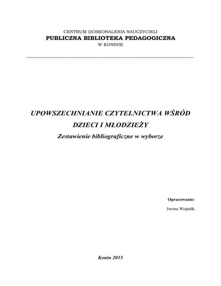 upowszechnianie czytelnictwa wśród dzieci i młodzieży