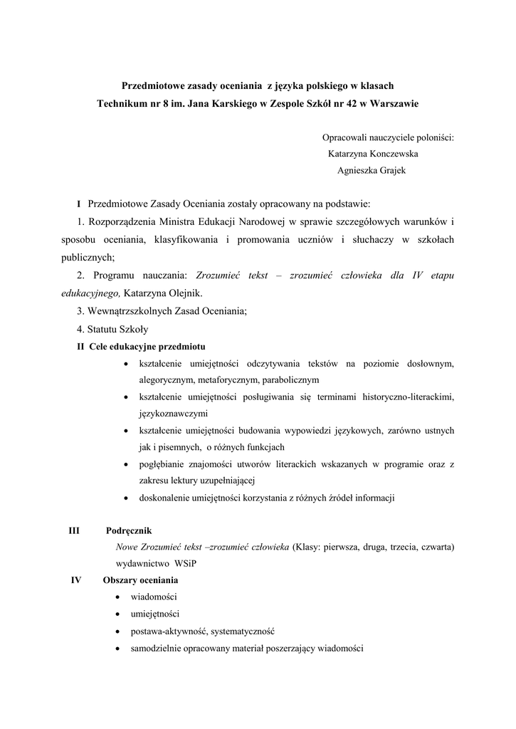 Język polski - Zespół Szkół nr 42 w Warszawie