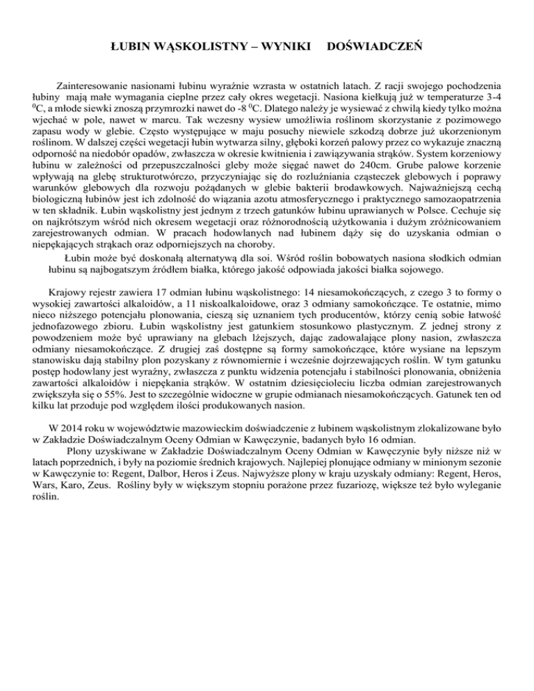 łubin wąskolistny – wyniki doświadczeń