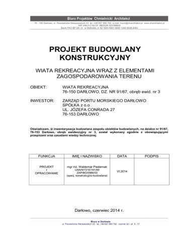 projekt budowlany konstrukcyjny - Zarząd Portu Morskiego Darłowo