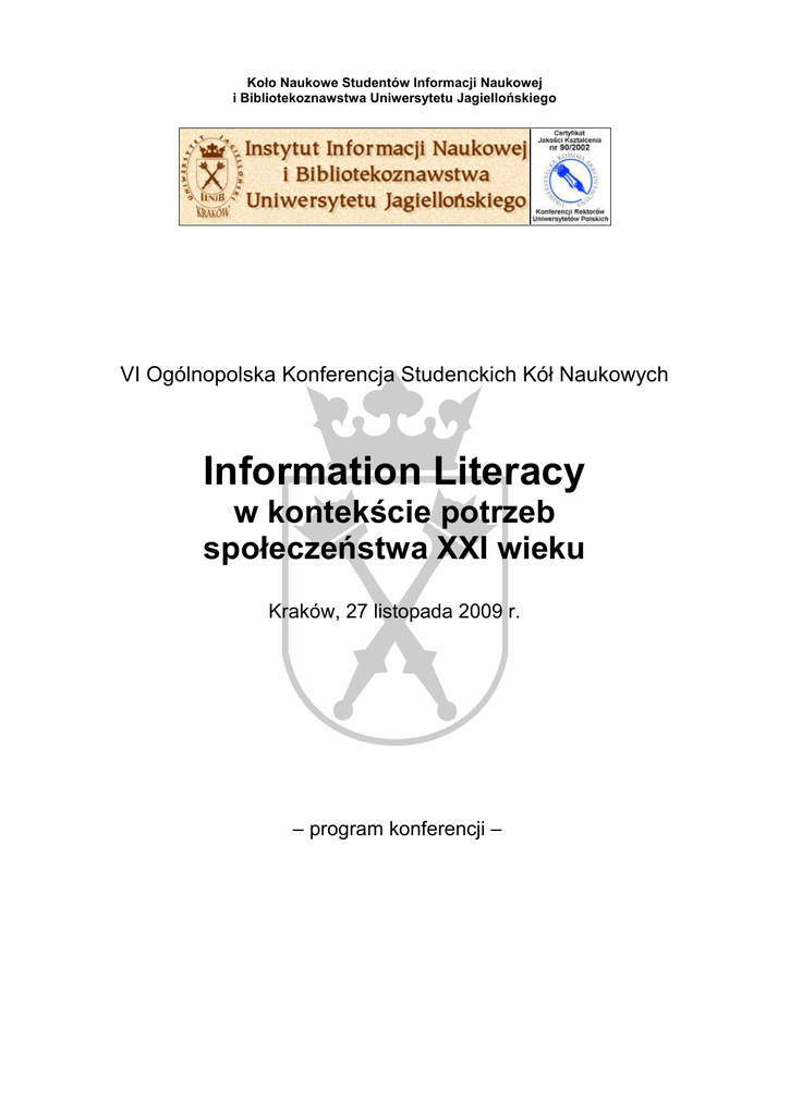 Information Literacy - Koło Naukowe Studentów Instytutu Informacji