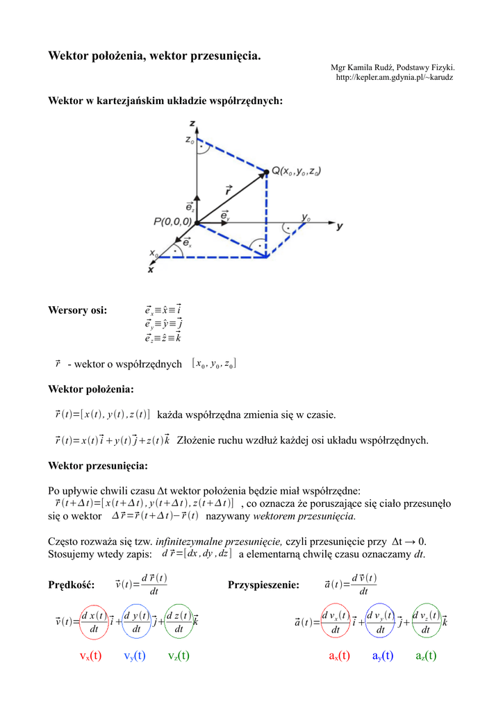 Wektor położenia, wektor przesunięcia. vx(t) vy(t)