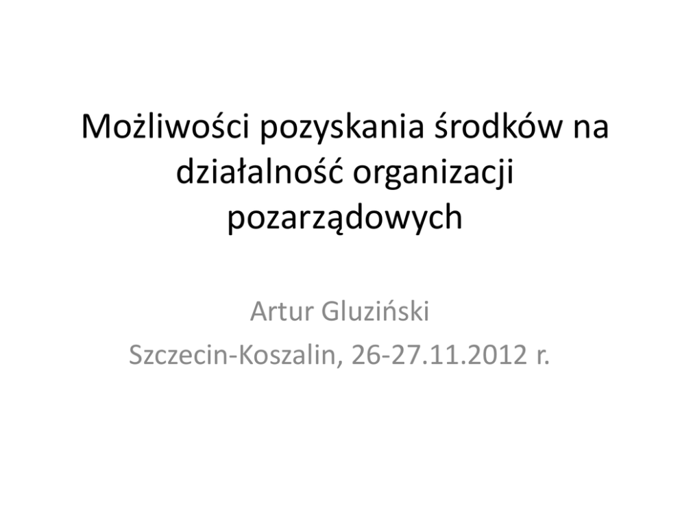 Możliwości pozyskania środków na działalność organizacji pozarządowych Artur Gluziński Szczecin-Koszalin, 26-27.11.2012 r. Program Operacyjny Fundusz Inicjatyw Obywatelskich 2009-2013 PO FIO • Krajowy Program Operacyjny Fundusz Inicjatyw Obywatelskich na lata 2009-2013, finansowany z rezerwy celowej budżetu państwa • W budżecie państwa na 2012 r. na realizację PO FIO przeznaczono 60 mln zł, z czego na projekty konkursowe 42,7 mln zł. • Podstawa prawna: Uchwała Nr 238/2008 Rady Ministrów z dnia 4 listopada 2008 r. 3 Wnioskodawcy PO FIO • organizacje pozarządowe • osoby prawne i jednostki organizacyjne działające na podstawie przepisów o stosunku Państwa do Kościoła Katolickiego w Rzeczypospolitej Polskiej, o stosunku Państwa do innych kościołów i związków wyznaniowych oraz o gwarancjach wolności sumienia i wyznania, jeżeli ich cele statutowe obejmują prowadzenie działalności pożytku publicznego • spółdzielnie socjalne (w zakresie działalności społecznie użytecznej w sferze zadań publicznych) • spółki non profit • oddziały terenowe a składanie wniosków 4 Wnioskodawcy PO FIO 2013 • Możliwość złożenia oferty wspólnej (partnerstwo wewnątrzsektorowe) • Partnerstwo publiczno-społeczne (z jednostkami administracji publicznej) • Brak innych możliwości 5 Partnerstwo publiczno –społeczne Umowa partnerska • • • • • • • nie jest wymagana na etapie składania wniosku, elementy wymagane: dane partnerów; zakres i cel umowy; zadania partnerów; obowiązki i uprawnienia partnerów; zobowiązania Partnera związane z rozliczeniem dotacji i złożeniem sprawozdania z realizacji zadania; • może również zawierać informacje o wysokości środków finansowych na pokrycie niezbędnych kosztów ponoszonych przez partnerów; Oferta wspólna • mogą ją złożyć co najmniej dwa podmioty uprawnione • oferta wspólna powinna zawierać dodatkowe w stosunku do oferty składanej przez jeden podmiot informacje: sposób reprezentacji podmiotów wobec administracji publicznej oraz określenie jakie działania w ramach realizacji zadania publicznego wykonywać będą poszczególne podmioty • złożenie oferty wspólnej wyklucza możliwość złożenia oferty indywidualnie przez podmiot, który bierze udział w ofercie wspólnej Oferta wspólna – elementy umowy • dane dotyczące oferty (priorytet, działanie, obszar, tytuł zadania, data realizacji); • dane współoferentów (dane teleadresowe, numery KRS, regon, reprezentacja); • opis współpracy – wspólne cele oferentów, planowane rezultaty, opis działań, postanowienia finansowe budżet skreślony na każdego partnera; • sposób zarządzania projektem, przepływ informacji, sprawozdawczość; Priorytety PO FIO • Priorytet I. Aktywni, świadomi obywatele, aktywne wspólnoty lokalne • Priorytet II. Sprawne organizacje pozarządowe w dobrym państwie • Priorytet III. Integracja i aktywizacja społeczna. Zabezpieczenie społeczne • Priorytet IV. Rozwój przedsiębiorczości społecznej • Priorytet V. Pomoc techniczna 9 Główne zasady ubiegania się o dotację w ramach PO FIO 2013 [1] • • • • • Procedura oceny wniosku oparta na wersji elektronicznej złożonej za pomocą generatora wniosków on-line. Konieczność złożenia wydrukowanej wersji papierowej z jednym załącznikiem (odpis z rejestru). Minimalna i maksymalna wysokość dotacji ustalona na poziomie od 10 tys. zł do 200 tys. zł. Możliwość realizacji projektów „jednorocznych” (w 2013 r.) Uprawniony podmiot będzie mógł złożyć 1 wniosek. Środki PO FIO nie mogą być przeznaczone na finansowanie działalności gospodarczej. 10 Główne zasady ubiegania się o dotację w ramach PO FIO 2013 [2] Udział środków własnych sprzyjający organizacjom o niewielkim potencjale: % wartości projektu środki własne niefinansowe / finansowe 10 tys. zł do 40 tys. zł 10% środki własne niefinansowe lub finansowe ponad 40 tys. zł do 150 tys. zł 10% środki własne finansowe ponad 150 tys. zł do 200 tys. zł 20% środki własne finansowe wartość dotacji 11 Kryteria merytoryczne i horyzontalne 1. Merytoryczna zawartość projektu i spełnianie kryteriów horyzontalnych: 60% 2. Budżet: 30% 3. Zasoby osobowe i rzeczowe Wnioskodawcy: 10%. Łączna ocena od jednego eksperta: 100 pkt (maksymalnie wniosek może otrzymać od ekspertów 200 pkt) 12 Kryteria horyzontalne • • • • Innowacyjność Partnerstwo Zrównoważony rozwój Równość szans Kryteria horyzontalne • Przez innowacyjność należy rozumieć zespół cech określonego przedsięwzięcia, które powstaje w oparciu o nowy pomysł (inwencję), stanowiącego, co do formy i zawartości merytorycznej, nowość na danym obszarze i/lub środowisku. Wymiar innowacyjności powinien przejawiać się w co najmniej jednym z wymiarów: uczestnika projektu, sposobu rozwiązania problemu lub formy wsparcia. Kryteria horyzontalne Przez partnerstwo – przy ocenie kryterium horyzontalnego - należy rozumieć współpracę przy realizacji projektu przez beneficjenta i podmioty z sektora finansów publicznych (partnerstwo publiczno-społeczne) lub w formule oferty wspólnej (partnerstwo wewnątrzsektorowe). Tak więc kryterium zostanie uznane za spełnione, jeśli Oferent złoży ofertę, w której wykaże planowaną współpracę z tymi podmiotami Kryteria horyzontalne Przez zrównoważony rozwój należy rozumieć kierunek, orientację na poprawę poziomu i jakości życia obecnych i przyszłych pokoleń, przy zapewnieniu ochrony i zachowania zasobów przyrodniczych i dziedzictwa kulturowego oraz właściwej struktury demograficznej społeczeństwa, dla osiągnięcia spójności społecznej. Kryteria horyzontalne Przez równość szans należy rozumieć posiadanie takich samych warunków i możliwości realizacji aspiracji i wykorzystania potencjału. W takim znaczeniu równość szans odnosi się do równego dost