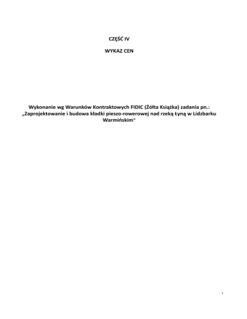 CZĘŚĆ IV WYKAZ CEN Wykonanie wg Warunków Kontraktowych