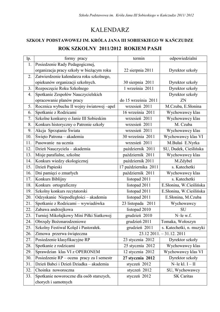 KALENDARZ ROKU SZKOLNEGO 2011_2012