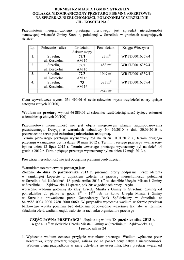 burmistrz miasta i gminy strzelin ogłasza nieograniczony przetarg