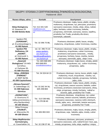 spis sklepow pazdziernik - Polski Klub Ekologiczny