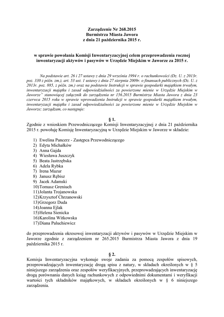 Zarządzenie Nr 268.2015 Burmistrza Miasta Jawora z dnia 21
