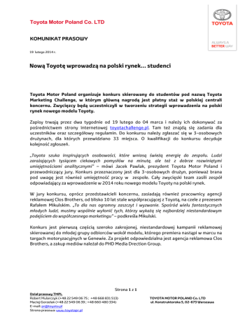 Informacja prasowa - Toyota Marketing Challenge
