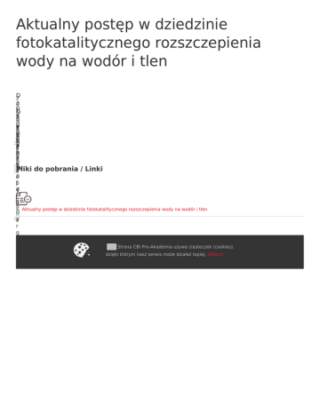 Aktualny postęp w dziedzinie fotokatalitycznego rozszczepienia wody na wodór i tlen D 2 a 0 tO 1 O d 5 a b n -d s0 a P T o zp1 rw Jy id :-oea p ę a lzr2 zn l0 se ty n k ie ia :tek :m iaźPliki do pobrania / Linki a cr tój d e y łc a z e Aktualny postęp w dziedzinie fotokatalitycznego rozszczepienia wody na wodór i tlen n n :y e r g i i Strona CBI Pro-Akademia używa ciasteczek (cookies), dzięki którym nasz serwis może działać lepiej. Zobacz