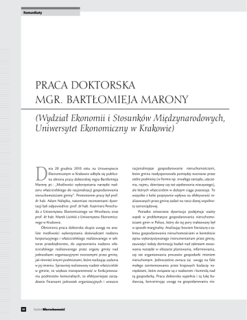 PRACA dOKTORSKA MgR. bARTłOMIEJA MARONY