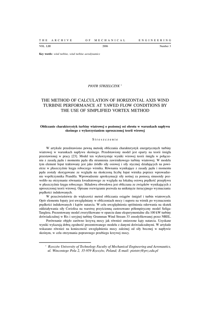 Streszczenie 2006/3/05 - Archive of Mechanical Engineering