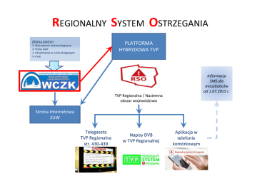 REGIONALNY SYSTEM OSTRZEGANIA ŹRÓDŁA DANYCH Ostrzeżenie meteorologiczne Stany wód Utrudnienia w ruchu drogowym inne PLATFORMA HYBRYDOWA TVP Informacja SMS dla mieszkańców od 1.07.2015 r. TVP Regionalna / Naziemna obszar województwa Strona Internetowa ZUW Telegazeta TVP Regionalna str. 430-439 Napisy DVB w TVP Regionalnej Aplikacja w telefonie komórkowym