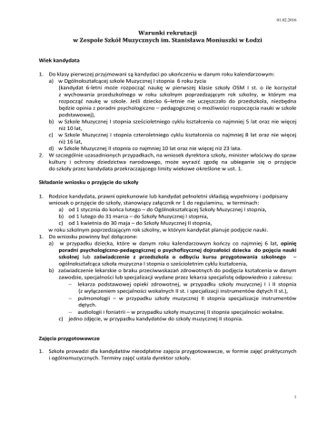 warunki rekrutacji 2017 - Zespół Szkół Muzycznych im. Stanisława