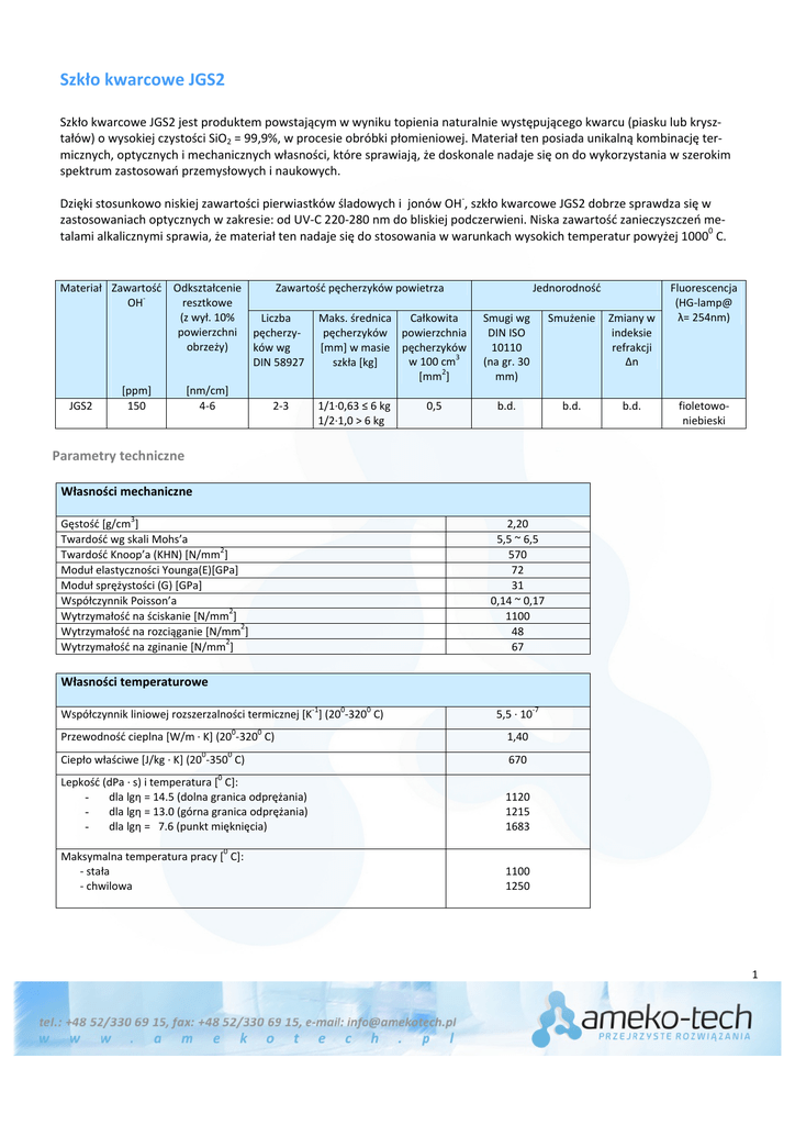 Szkło kwarcowe JGS2 jest materiałem powstającym w wyniku