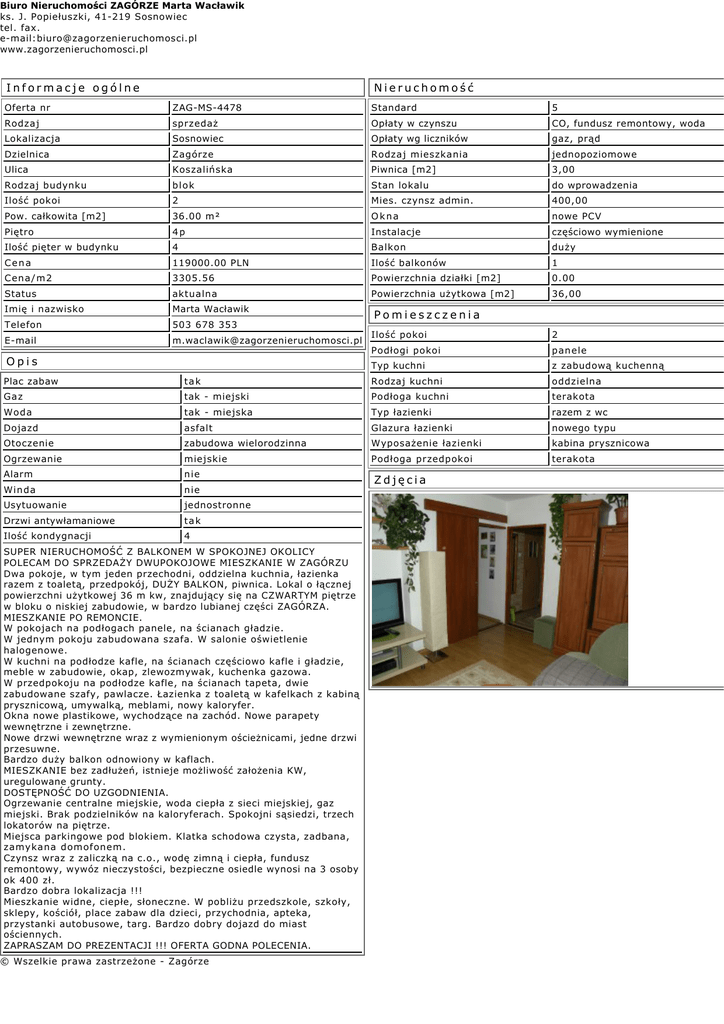 Drukuj PDF - Biuro Nieruchomości ZAGÓRZE