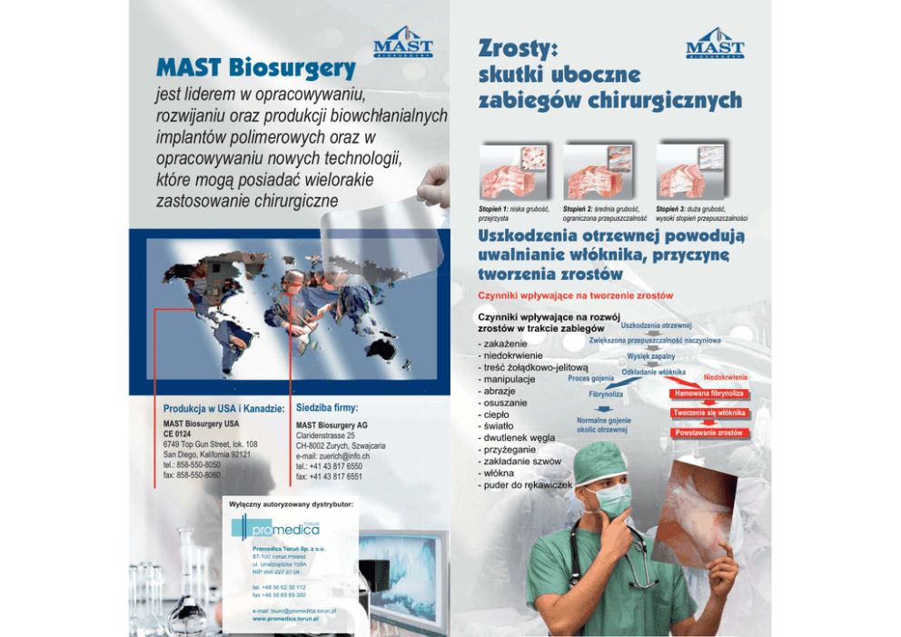 MAST Biosurgery Zrosty: skutki uboczne zabiegów chirurgicznych ` Uszkodzenia otrzewnej powoduja ` tworzenia zrostów &]\QQLNLZSá\ZDMąFHQDWZRU]HQLH]URVWyZ &]\QQLNLZSá\ZDMąFHQDUR]ZyM Uszkodzenia otrzewnej ]URVWyZZWUDNFLH]DELHJyZ $ +)(, - ) "- '()*$+)( CE 0124 6749 Top Gun Street, lok. 108 San Diego, Kalifornia 92121 tel.: 858-550-8050 fax: 858-550-8060 '()*$(. Claridenstrasse 25 CH-8002 Zurych, Szwajcaria e-mail: [email protected] tel.: +41 43 817 6550 fax: +41 43 817 6551 :\áąF]Q\DXWRU\]RZDQ\G\VWU\EXWRU 3UR 3URP UR RPHGLF G FD7R D7R 7R RUUXĔ XĔ 6S 6S ]RR 7 7 7RUXĔ RUXĔ3RO RUX 3R DQG QG XO*UXG XG G]LąG ]Lą ]ND ]ND$ 1,3 WHO ID[ HPDLOELXUR#SURPHG GLFD L WRUXQSO LF SO SO SO ZZZSURPHGLFDWR W UXQSO SO # $ %& ]DNDĪHQLH QLHGRNUZLHQLH WUHĞüĪRáąGNRZRMHOLWRZą Niedokrwienie Proces gojenia PDQLSXODFMH DEUD]MH ! " RVXV]DQLH FLHSáR ĞZLDWáR GZXWOHQHNZĊJOD NZĊJOD SU]\ĪHJDQLH QLH ]DNáDGDQLHV]ZyZ LHV]ZyZ ZáyNQD SXGHUGRUĊNDZLF]HN UĊNDZLF]HN Zrosty – znaczenie dla pacjenta Chirurgia odbytu i odbytnicy – „obszar górny”. Ortopedia: ' ($' ()#) Minimalizowanie skutków ubocznych wynikajacych z zabiegów chirurgicznych ` Ginekologia – „obszar dolny”. !"# $%&# )%& !! ) > ;&!& /) ;&"& > />( > <(' # (/? > Zrosty – znaczenie dla chirurga * / ;"!"( < ' = > ?>( ) =&;" >> > * ) > ( '' *( > F > Hospitalisations A;&&"$ ' (> /B"= >EFI( %="B;J;B$;L/ >/ (;&;!"JM$%L /> $ Adhesion related hospitalisations in 2005 Zrosty * >/' '(> >/'' ;$B(>>$* "& > '// ( ( $ Wnioski: nni !"#!$%$ %#&!%#%%' %(##%$%%#$)' %#$'* ® ® !"#$ #%e ' arach %( ( # > ( #>( >(' / ( #('( / >N N>> ) '>> ( >( ( #( '( >O (/ )# N> ('/)' # ) >(/ ( ' > ( N> > ( (( / ' (P ( >''
