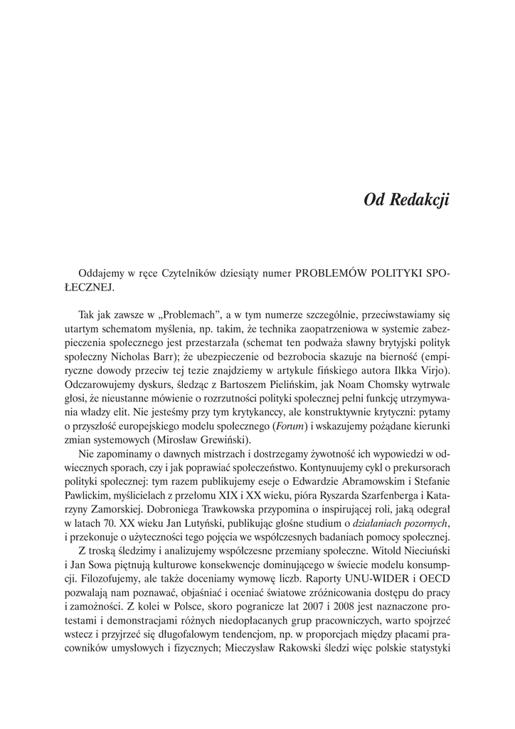 Od redakcji - Problemy Polityki Społecznej