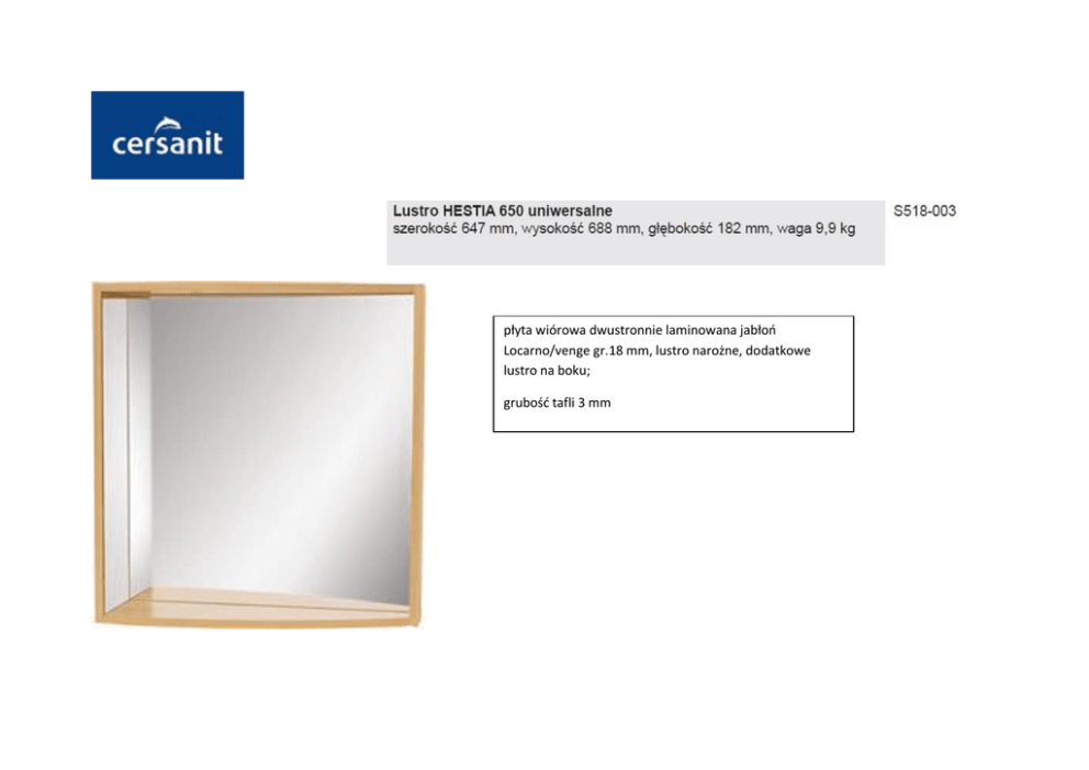 płyta wiórowa dwustronnie laminowana jabłoń Locarno/venge gr.18 mm, lustro narożne, dodatkowe lustro na boku; grubość tafli 3 mm