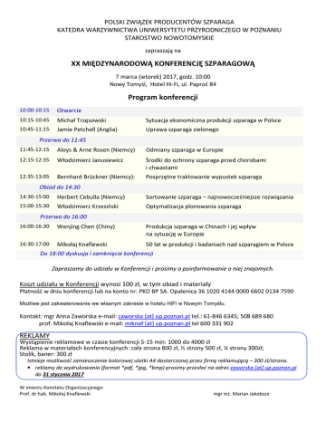 XX MIĘDZYNARODOWĄ KONFERENCJĘ SZPARAGOWĄ Program
