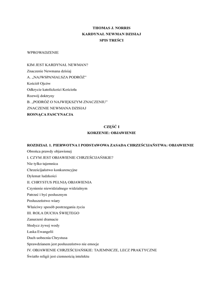 THOMAS J. NORRIS KARDYNAŁ NEWMAN DZISIAJ SPIS TREŚCI