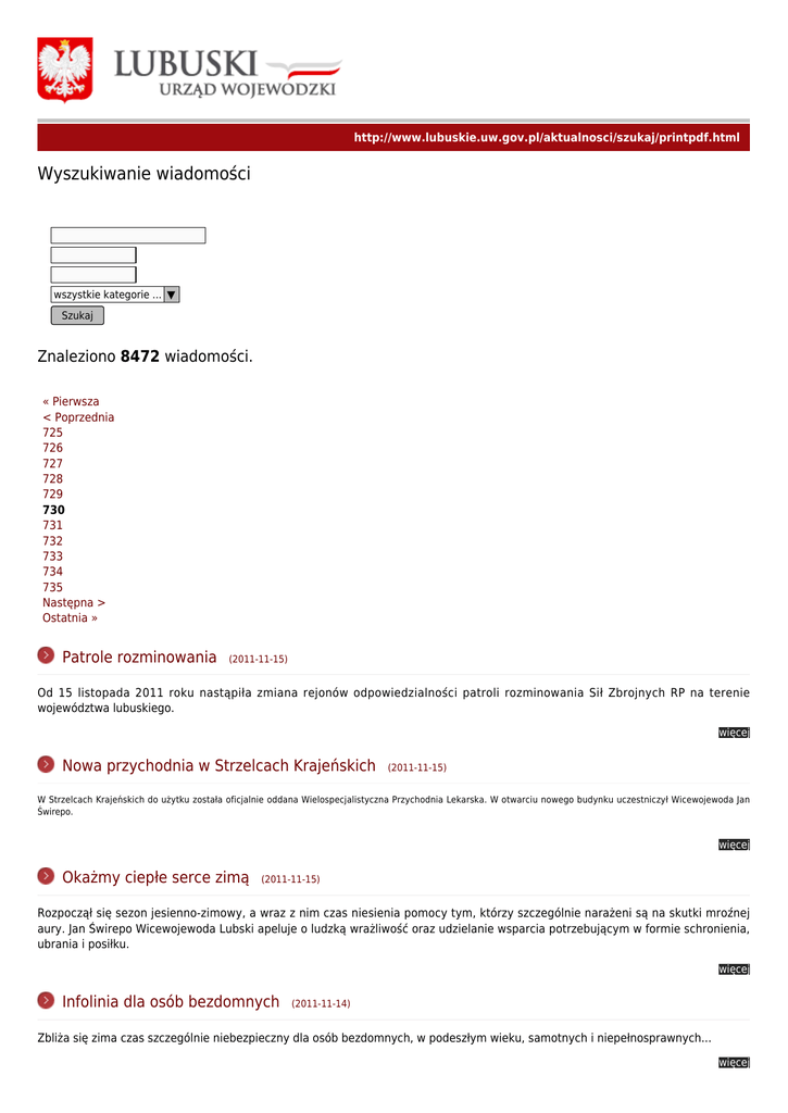 Wyszukiwanie wiadomości - Lubuski Urząd Wojewódzki w Gorzowie