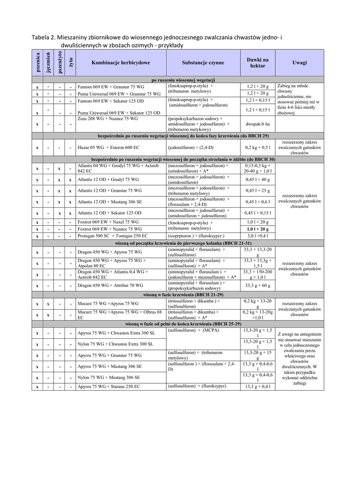 Tabela 2. Mieszaniny zbiornikowe do wiosennego