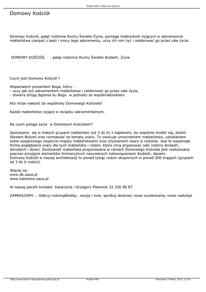 Domowy Kościół - Parafia NSPJ w Bieruniu Nowym
