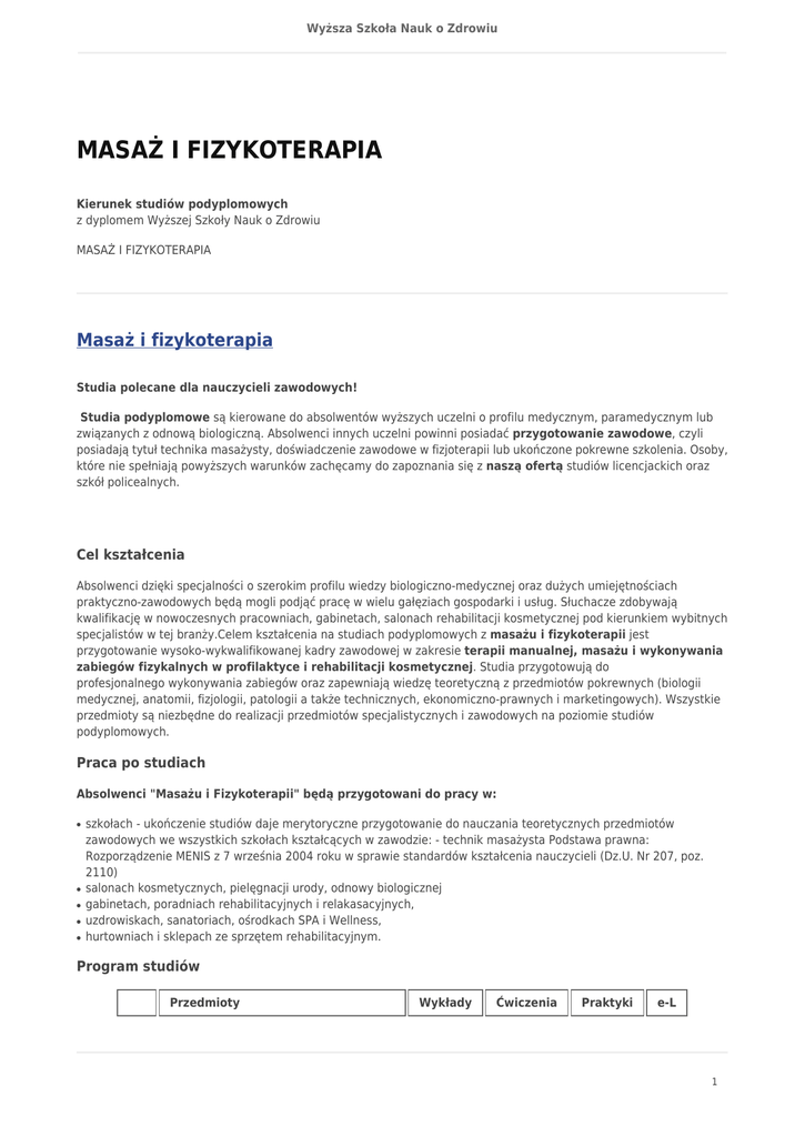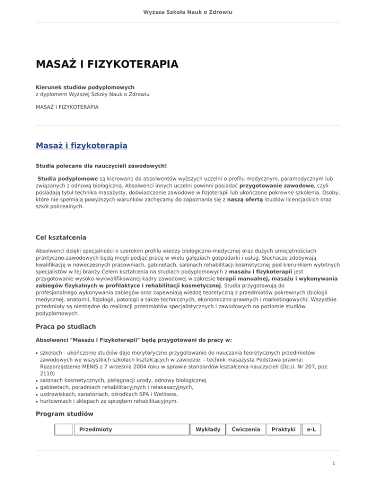 masaż i fizykoterapia - Wyższa Szkoła Nauk o Zdrowiu