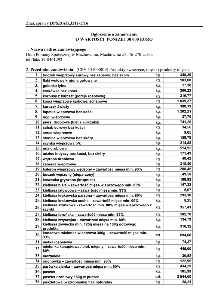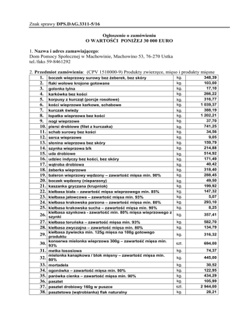 Ogłoszenie o zamówieniu - mięso, wędliny + druk oferty i wzór