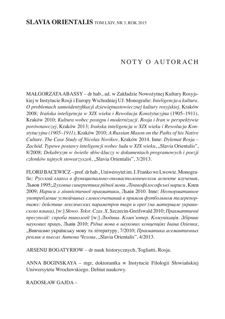 noty o autorach - Slavia Orientalis
