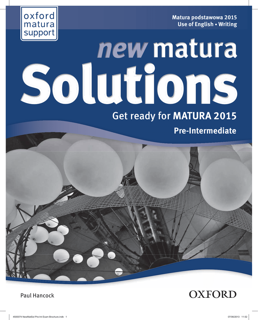 This Matura brochure is to accompany New Matura Solutions (Pre-Intermediate)