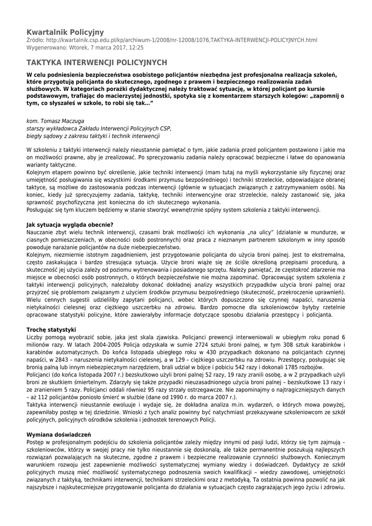 Kwartalnik Policyjny TAKTYKA INTERWENCJI POLICYJNYCH