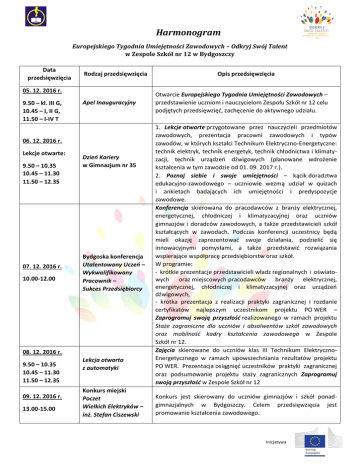 Szczegółowy harmonogram - Zespół Szkół nr 12 w Bydgoszczy