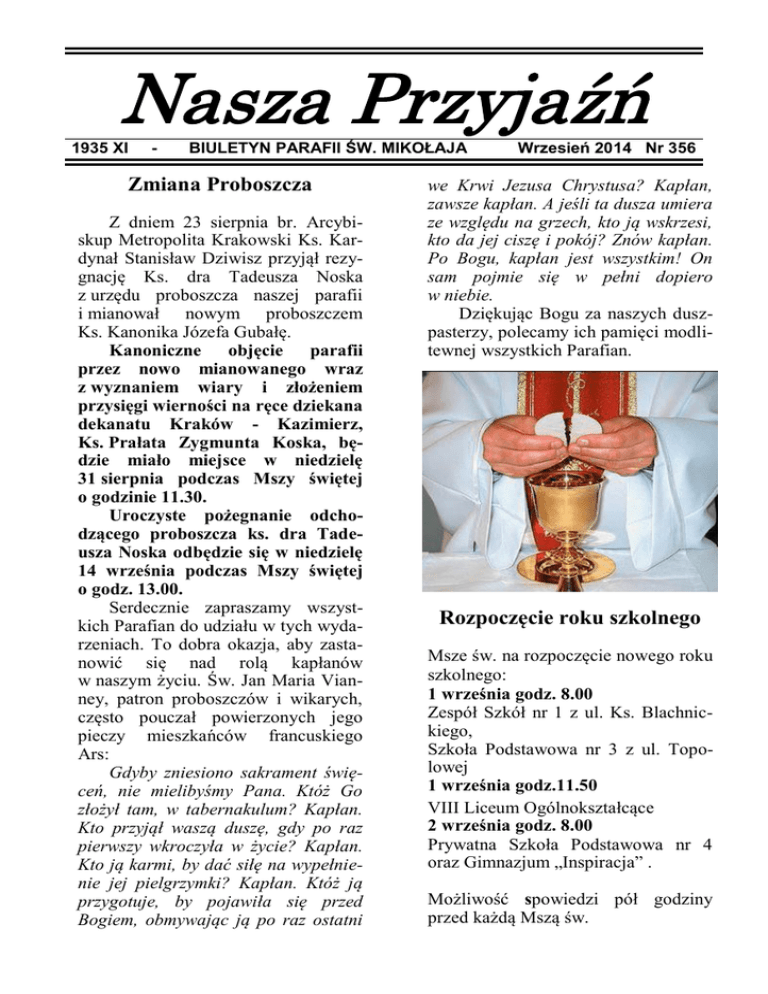Nasza Przyjaźń - Parafia św. Mikołaja w Krakowie