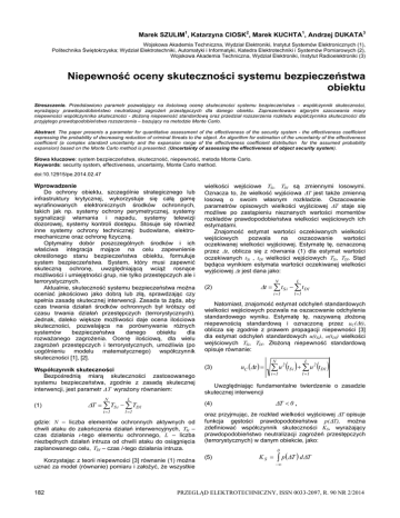 Słowa kluczowe: system bezpieczeństwa, skuteczność, niepewność, metoda Monte Carlo.