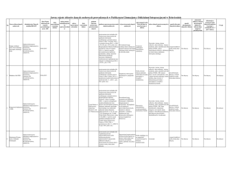 Jawny rejestr zbiorów danych osobowych prowadzonych w Publicznym Gimnazjum z Oddziałami Integracyjnymi w Dzierżeninie Lp. 1 2 Nazwa zbioru danych osobowych Administrator Danych/ siedziba/REGON Księga ewidencji dzieci wraz realizacją obowiązku szkolnego PGD Publiczne Gimnazjum z Oddziałami Integracyjnymi w Dzierżeninie, Dzierżenin 105, 06-114 Pokrzywnica, 130425776, Składnica Akt PGD Publiczne Gimnazjum z Oddziałami Integracyjnymi w Dzierżeninie, Dzierżenin 105, 06-114 Pokrzywnica, 130425776, 3 Publiczne Gimnazjum z Oddziałami Integracyjnymi w Księgowość budżetowa Dzierżeninie, Dzierżenin 105, – PGD 06-114 Pokrzywnica, 130425776, 4 Publiczne Gimnazjum z Oddziałami Integracyjnymi w Dzierżeninie, Dzierżenin 105, 06-114 Pokrzywnica, 130425776, Monitoring Wizyjny terenu i budynku Gimnazjum Data Wpisu rodzaj zmiany data informacji do (aktualizacja/no zakres wprowadzone rejestru wy wprowadzon j ostatniej prowadzonego wpis/wykreśleni ych zmian zmiany/ przez ABI e) data wykreślenia zbioru podmiot któremu podstawa prawna przetwarzania cel przetwarzania danych powierzono danych osobowych osobowych przetwarzanie danych 29-06-2015 przetwarzanie jest niezbędne dla zrealizowania uprawnienia lub spełnienia obowiązku wynikającego z przepisu prawa: Ustawa z dnia 7 września 1991 r. o systemie oświaty (Dz.U. z 2004 r. Nr 256, poz. 2572 z późn. zm.) Rozporządzenie Ministra Edukacji Narodowej z dnia 29 sierpnia 2014 r. w sprawie sposobu prowadzenia przez publiczne przedszkola, szkoły i placówki dokumentacji przebiegu nauczania, działalności wychowawczej i opiekuńczej oraz rodzajów tej dokumentacji (Dz.U. z 2014 r., poz. 1170) 29-06-2015 przetwarzanie jest niezbędne dla zrealizowania uprawnienia lub spełnienia obowiązku Dopełnienie obowiązków wynikającego z przepisu prawa: określonych w przepisach Ustawa z dnia 14 lipca 1983 r. o prawa. narodowym zasobie archiwalnym i archiwach (Dz. U. z 2015 r., poz. 566 z późn. zm.) 29-06-2015 29-06-2015 przetwarzanie jest niezbędne dla zrealizowania uprawnienia lub spełnienia obowiązku wynikającego z przepisu prawa: Rozporządzenie Ministra Finansów z dnia 18 grudnia 2001r. w sprawie szczególnych zasada rachunkowości oraz Urząd Gminy w planów kont dla budżetu państwa, Pokrzywnicy, budżetów jednostek samorządu Aleja Jana terytorialnego oraz niektórych Pawła II 1, 06- jednostek sektora finansów 121 Pokrzywnica publicznych (Dz. U. Nr 153, poz. 1752) Zarządzenie Nr 27/2006 Wójta Gminy Pokrzywnica z dnia 10.10.2006r. w sprawie zasad (polityki) rachunkowości dla Urzędu Gminy Pokrzywnica. Ustawa z 29.09.1994r. o rachunkowości (Dz. U. z 2002 Nr 76 poz. 694 z późn. zm.) przetwarzanie jest niezbędne dla wypełnienia prawnie usprawiedliwionych celów realizowanych przez administratorów danych albo odbiorców danych, a przetwarzanie nie narusza praw i wolności osoby, której dane dotyczą; opis kategorii osób, sposób których dane są zakres danych przetwarzanych w sposób zbierania udostępniania przetwarzane w zbiorze danych do zbioru danych ze zbioru zbiorze Uczniowie podlegający obowiązkowi szkolnemu. Nazwiska i imiona, imiona rodizców, data urodzenia, miejsce urodzenia, adres zameldowania lub z innych źródeł niż pobytu, PESEL, adresy osoba, której dane zamieszkania rodziców, informacja dotyczą na temat miejsca spełniania obowiązku szkolnego Osoby, których dotyczą materiały archiwalne powstałe i powstające w związku z działalnością Prowadzenie ksiąg rachunkowych Publiczne Gimnazjum z Oddziałami Integracyjnymi w Dzierżeninie. Sporządzenie na ich podstawie sprawozdań finansowych, kontrola w zakresie dochodów i wydatków budżetowych oraz dostarczenie informacji o sytuacji majątkowej i finansowej Pracownicy, zleceniobiorcy, świadczeniobiorcy, kontrachenci Szkoły Zapewnienie bezpieczeństwa osobom przebywającym na terenie wokół szkoły oraz wejściem do budynku szkoły, parkinku oraz placu zabaw. Osoby znajdujące się na nagraniach zarejestrowanych w wizerunek obszarze monitorowania Prowadzenie księgi ewidencji dzieci służącej do kontroli realizacji obowiązku szkolnego dzieci należących do obwodu szkoły. oznaczenie odbiorcy danych lub kategorii odbiorców, którym dane mogą być przekazywane informacja o przekazywaniu danych do państwa trzeciego w rozumieniu art. 7 pkt 7 ustawy Uwagi Nie dotyczy Nie dotyczy Nie dotyczy Nie dotyczy Nazwiska i imiona, imiona rodizców, data urodzenia, miejsce urodzenia, adres zameldowania lub pobytu, PESEL, NIP, miejsce pracy, zawód, wykształcenie, seria i numer dowodu osobistego, numer telefonu, dane zawarte w dokumentacji powstałej i powstającej w związku z działalnością Szkoły od osób których dotyczą, z innych Nie dotyczy źródeł niż osoba, której dane dotyczą Nie dotyczy Nie dotyczy Nie dotyczy Nazwiska i imiona, imiona rodizców, data urodzenia, miejsce urodzenia, adres zameldowania lub pobytu, PESEL, NIP, Dane kontrahentów, dokumenty księgowe, ich wartość, konta księgowe i klasyfikacja budżetowa, dane płacowe pracowników , zleceniobiorców, świadczenia od osób których dotyczą, z innych Nie dotyczy źródeł niż osoba, której dane dotyczą Nie dotyczy Nie dotyczy Nie dotyczy z innych źródeł niż osoba, której dane dotyczą Nie dotyczy Nie dotyczy Nie dotyczy Nie dotyczy 5 6 7 8 Rejestr korespondencji przychodzącej i wychodzącej Gimnazjum z pocztową książką nadawczą Publiczne Gimnazjum z Oddziałami Integracyjnymi w Dzierżeninie, Dzierżenin 105, 06-114 Pokrzywnica, 130425776, Rejestr skarg i wniosków PGD Publiczne Gimnazjum z Oddziałami Integracyjnymi w Dzierżeninie, Dzierżenin 105, 06-114 Pokrzywnica, 130425776, Rejestr delegacji PGD Publiczne Gimnazjum z Oddziałami Integracyjnymi w Dzierżeninie, Dzierżenin 105, 06-114 Pokrzywnica, 130425776, Rejestr upoważnień Gimnazjum Publiczne Gimnazjum z Oddziałami Integracyjnymi w Dzierżeninie, Dzierżenin 105, 06-114 Pokrzywnica, 1