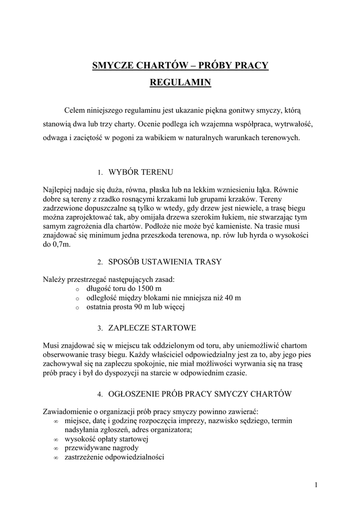 Regulamin Prób Pracy Smyczy Chartów