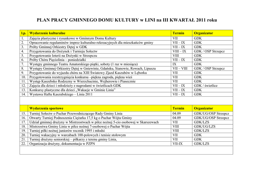 Plan pracy III kwartał 2011