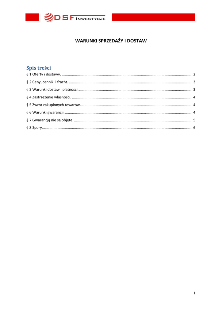WARUNKI SPRZEDAŻY I DOSTAW Spis treści