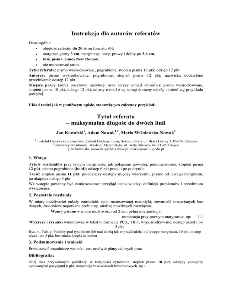 stopień pisma 10 pkt, odstęp 12 pkt; adresy e-mail z tej samej domeny należy skrócić wg przykładu