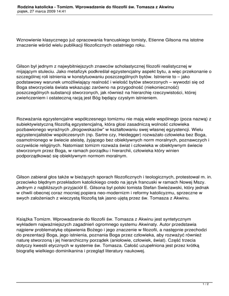 Rodzina katolicka - Tomizm. Wprowadzenie do filozofii św. Tomasza
